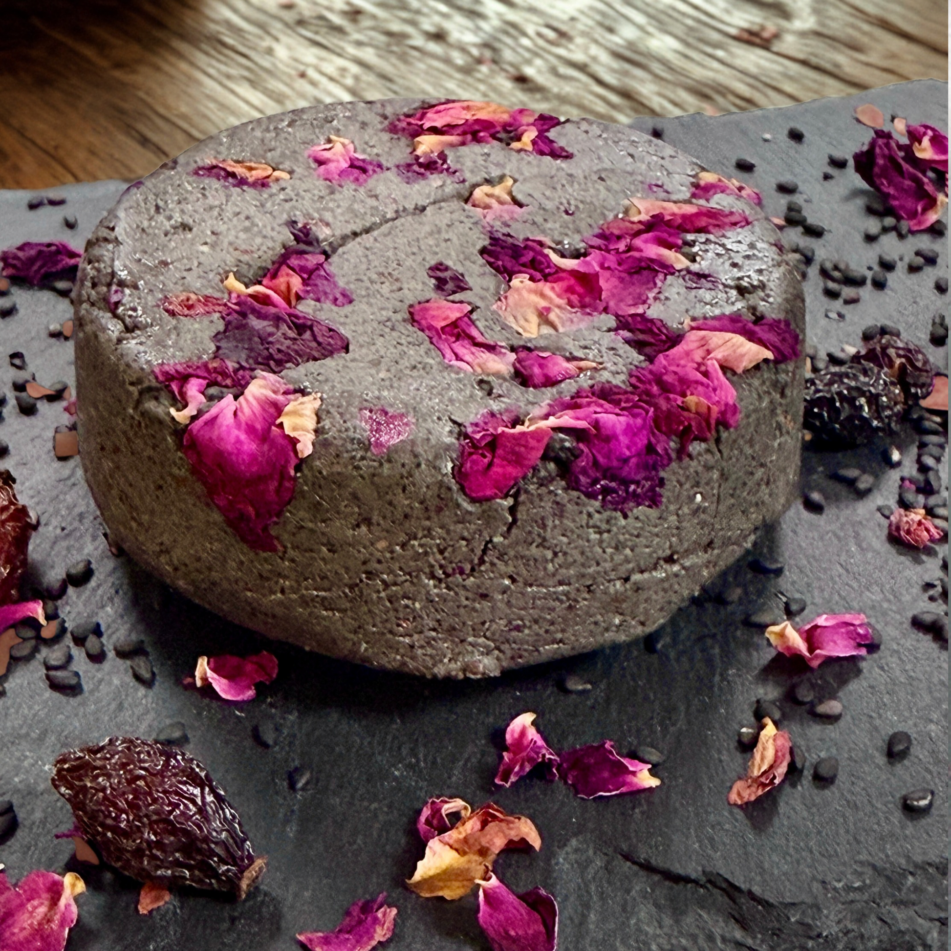 Silky and rich with toasted black sesame, tart rosehips, and gentle floral notes from dried rose petals and a touch of rose water. Complex yet restrained. (4oz)
